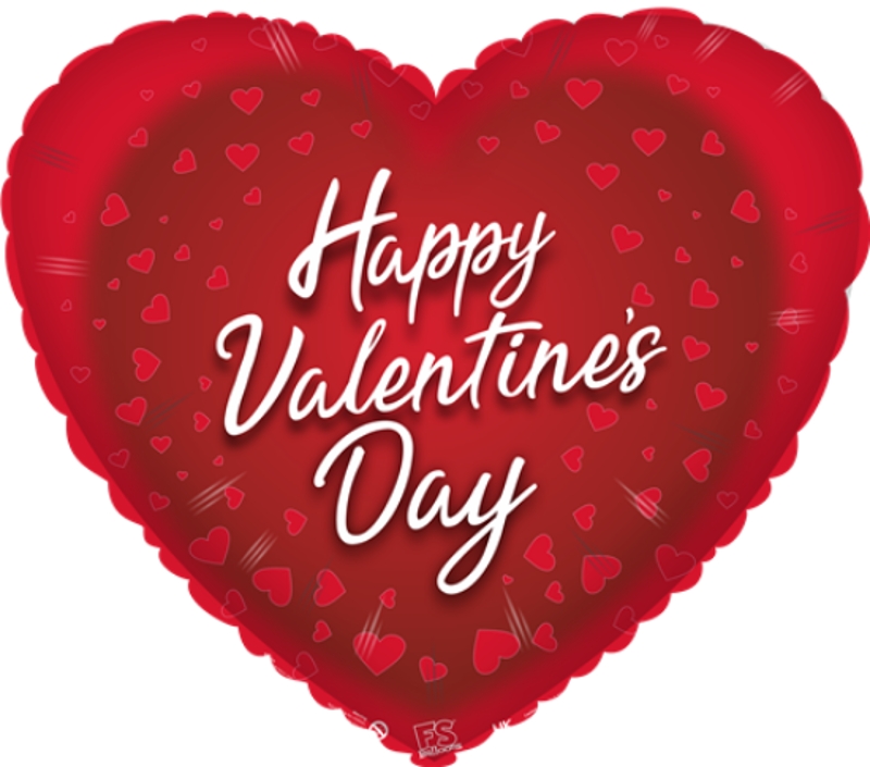 Nestled beside the roses is a Valentine balloon, adding a cheerful touch with its bright colours and loving message.