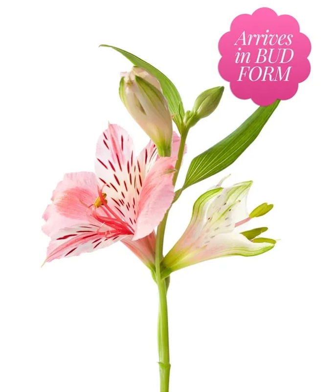 A vase full of mixed-coloured alstroemeria flowers feels like a small celebration captured in glass. Slender green stems rise in a loose, airy cluster, each one branching into delicate sprays of blooms. The flowers open like little trumpets or star-shaped lilies, their petals slightly curved and lightly freckled, giving them a hand-painted look.