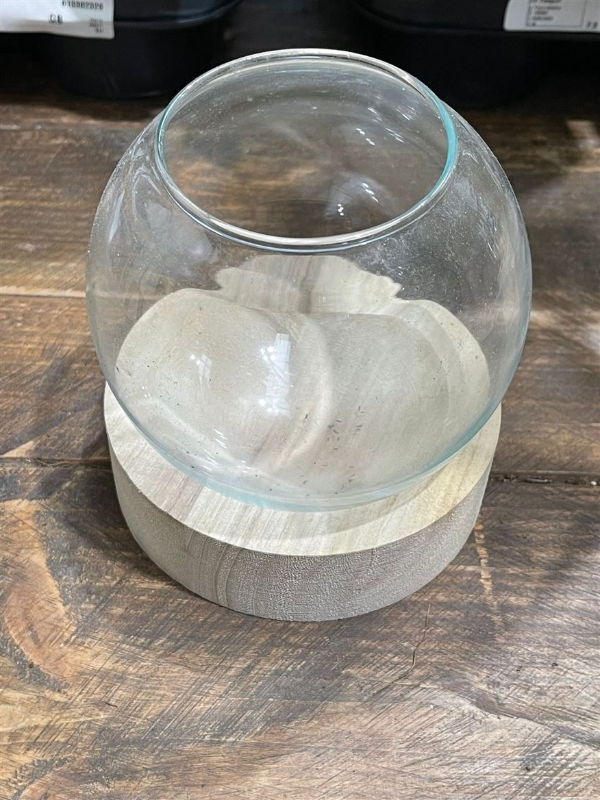 sweet smelling nostalgic hyacinths in pretty lavender and lilac hues  ,presented in a glass globe vase on wooden stand